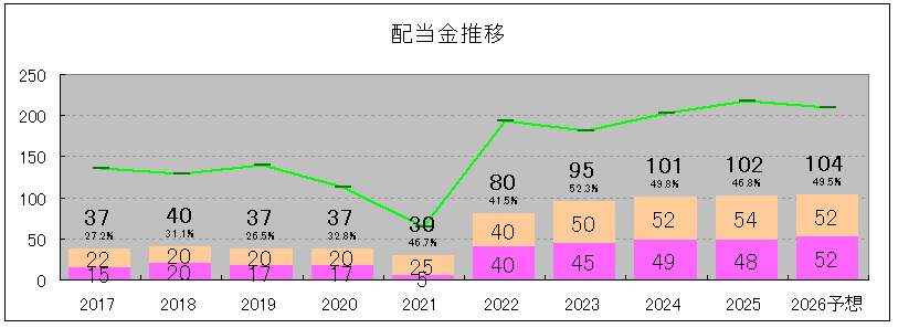 | 配当性向 | 27.2% | 31.1% | 26.5% | 32.8% | 46.7% | 41.5% | 52.3% | 49.8% | 46.8% | 49.5% |